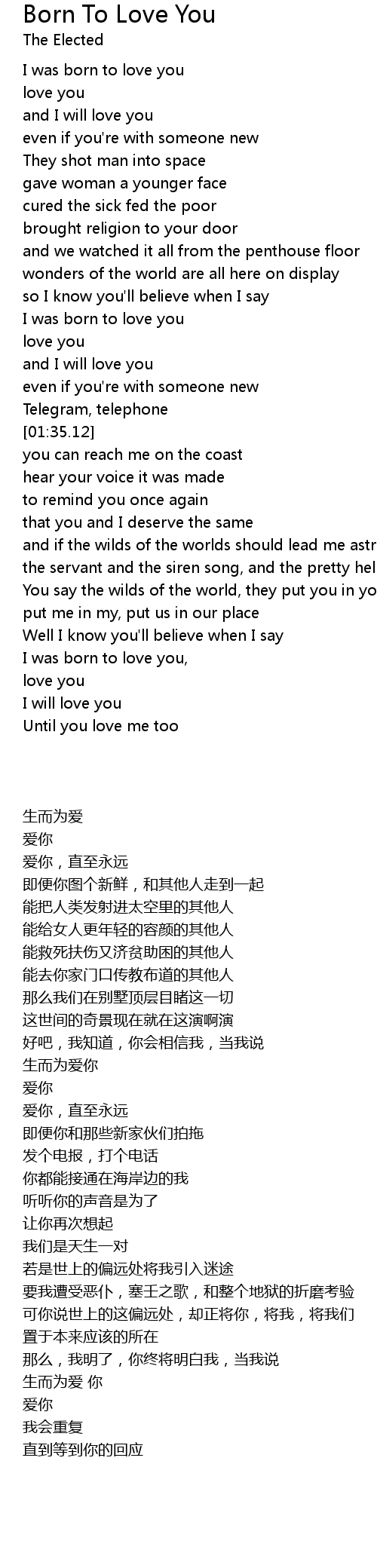 I was born to love you, |