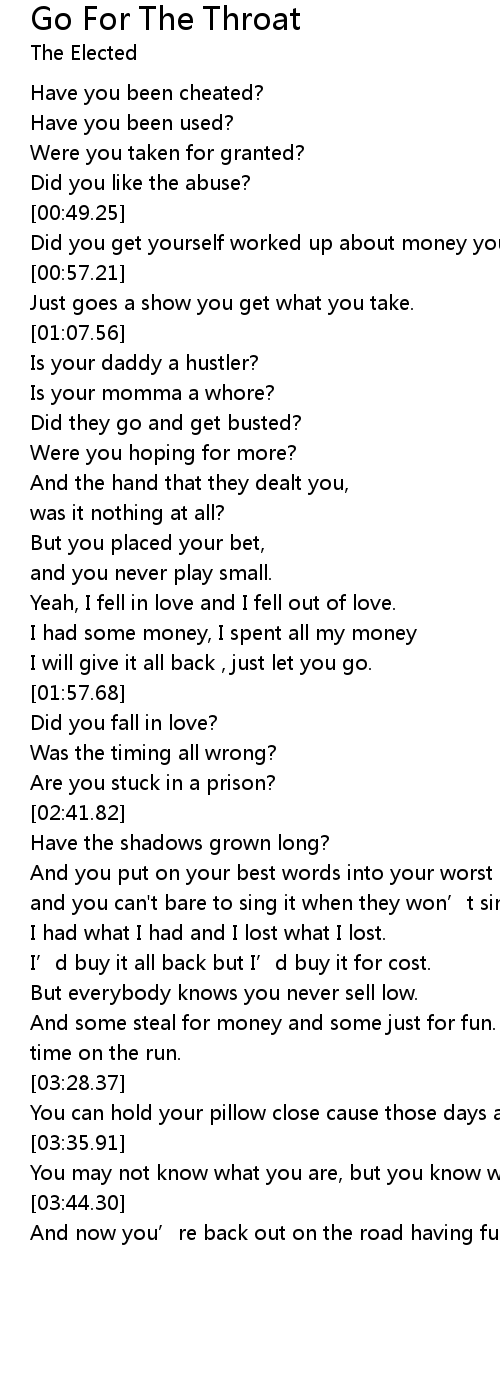 | [00:50.21] | Did you get yourself worked up about money you make? |
