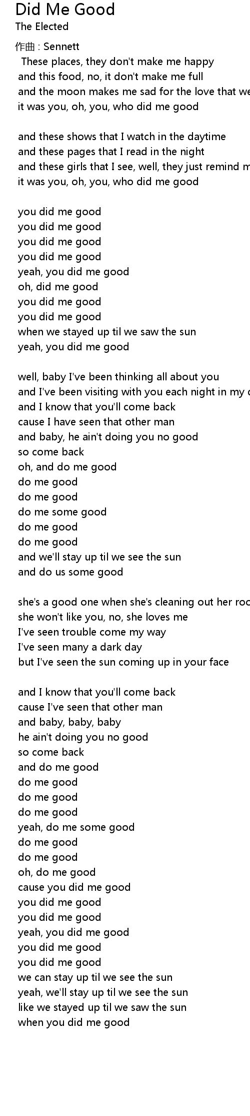 | cause you did me good | |