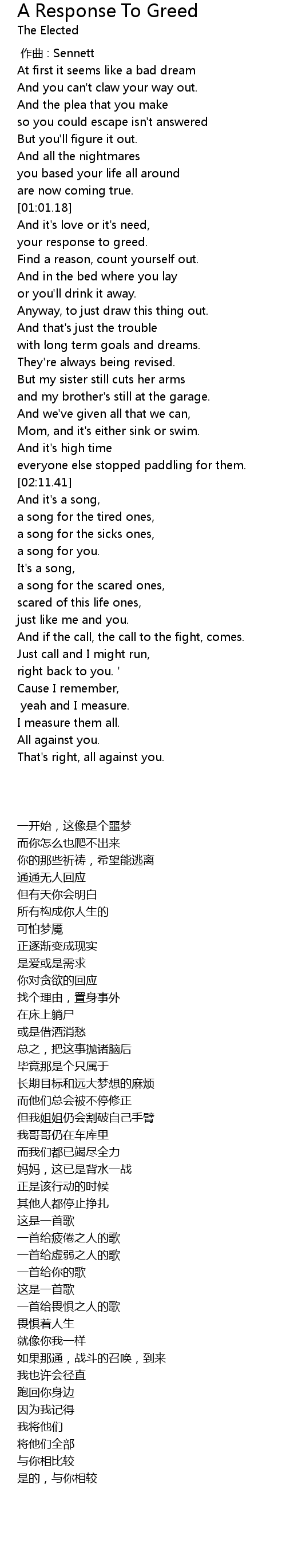 | Song | A Response To Greed |