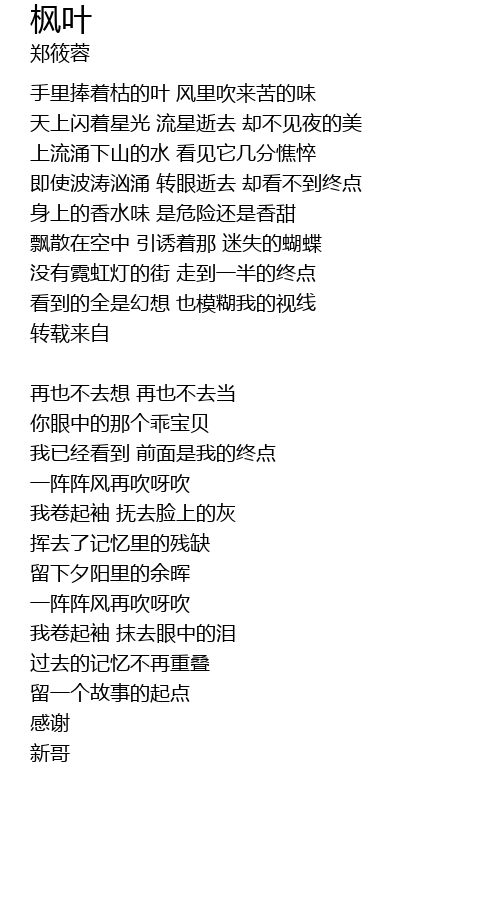 | 手里捧着枯的叶 风里吹来苦的味 | |
