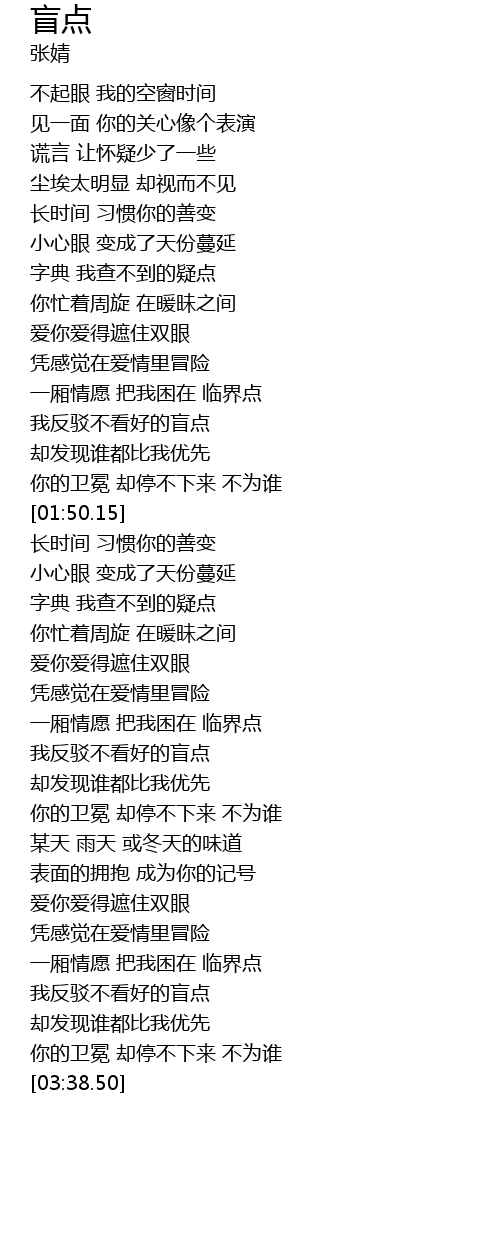 | [01:33.01] | wǒ fǎn bó bù kàn hǎo de máng diǎn |