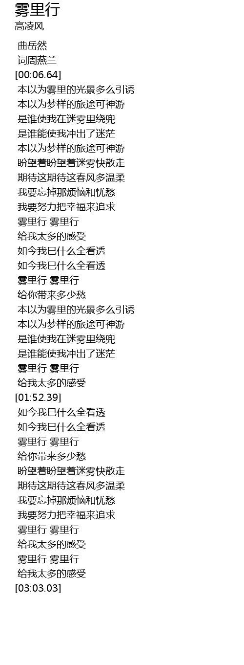| [01:04.91] | 雾里行 雾里行 |