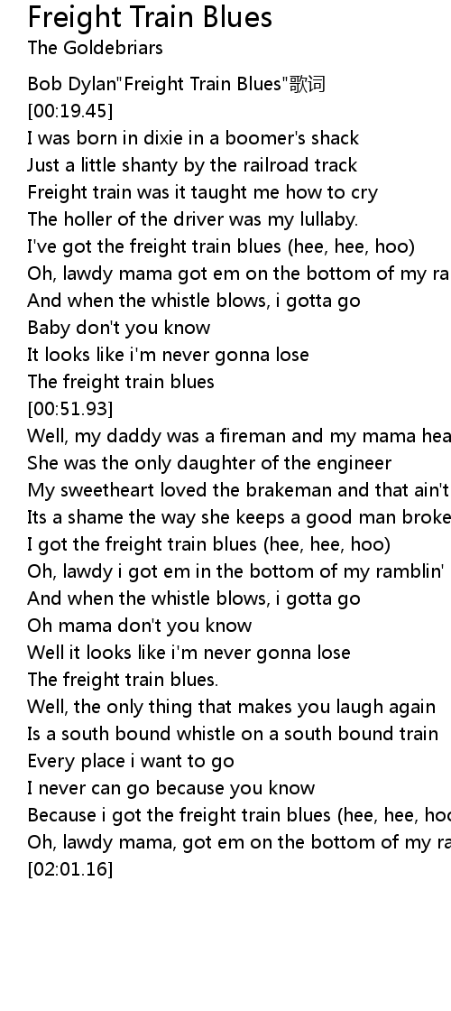 | [00:15.37] | Bob Dylan"Freight Train Blues"歌词 |