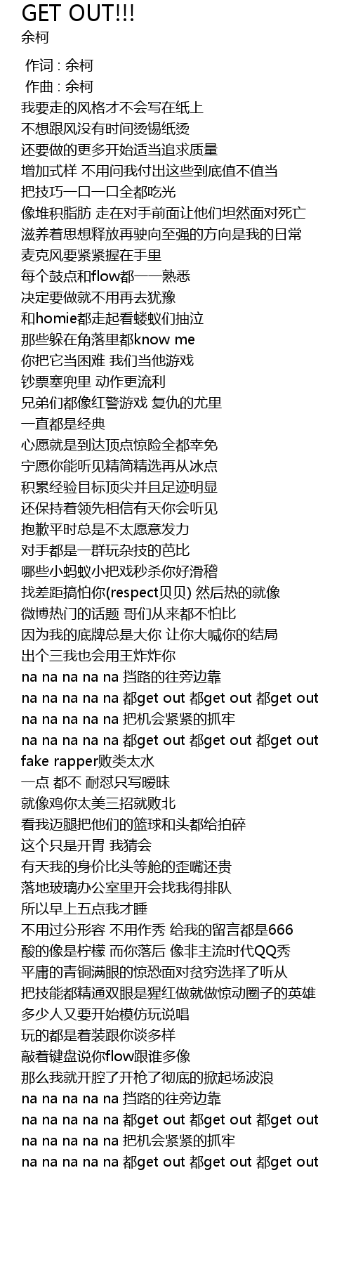 | [01:36.832] | na na na na na 都get out 都get out 都get out |