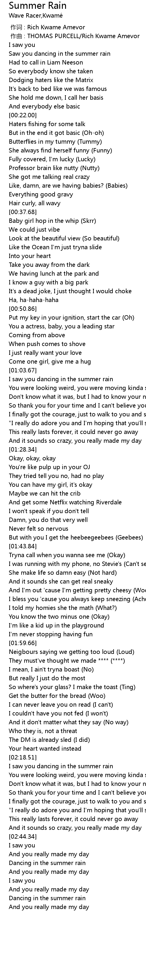 | [02:49.39] | Dancing in the summer rain |