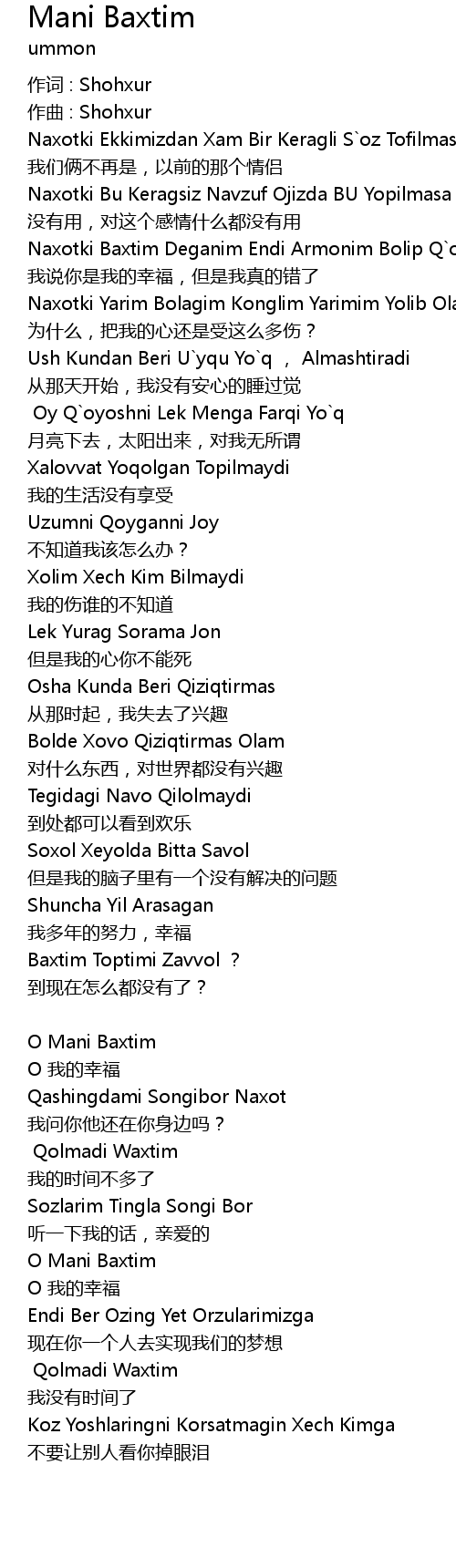 | Naxotki Baxtim Deganim Endi Armonim Bolip Q olasan | |