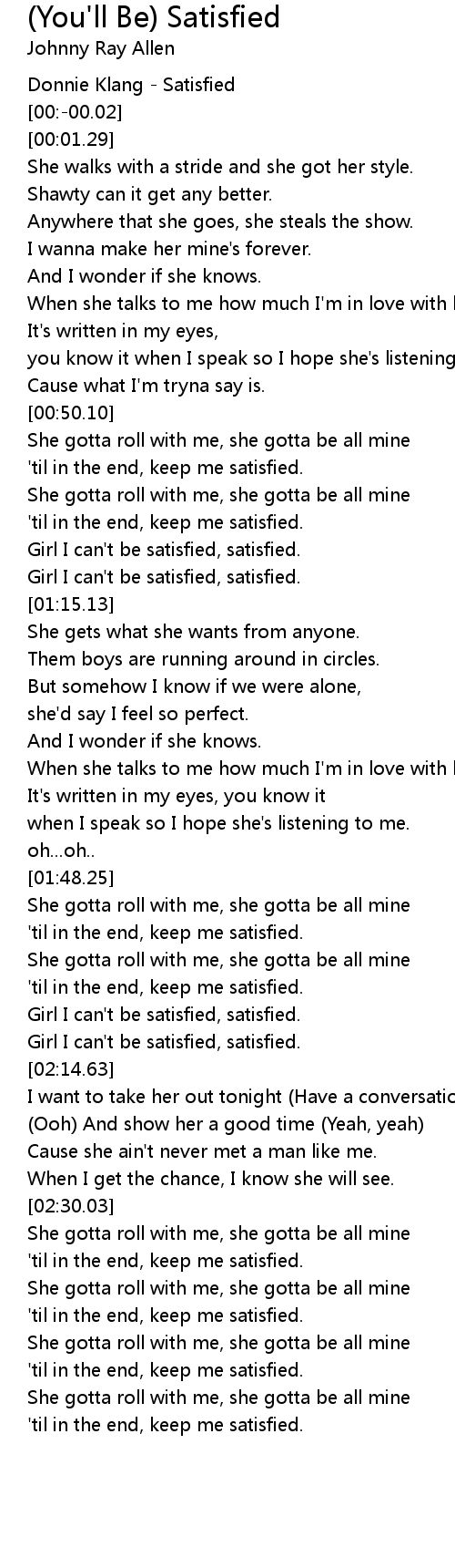 'til in the end, keep me satisfied. |