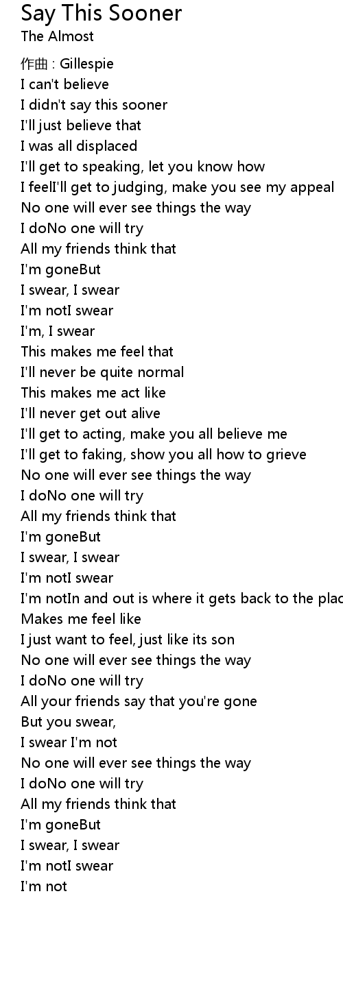 | Song | Say This Sooner |