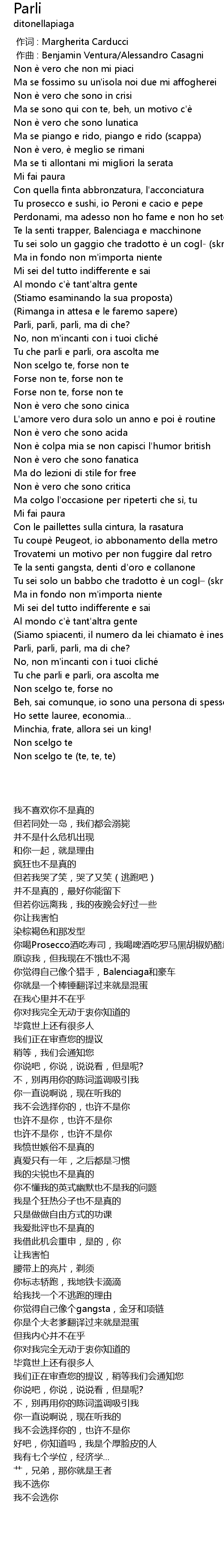 | [01:58.107] | Parli, parli, parli, ma di che? |