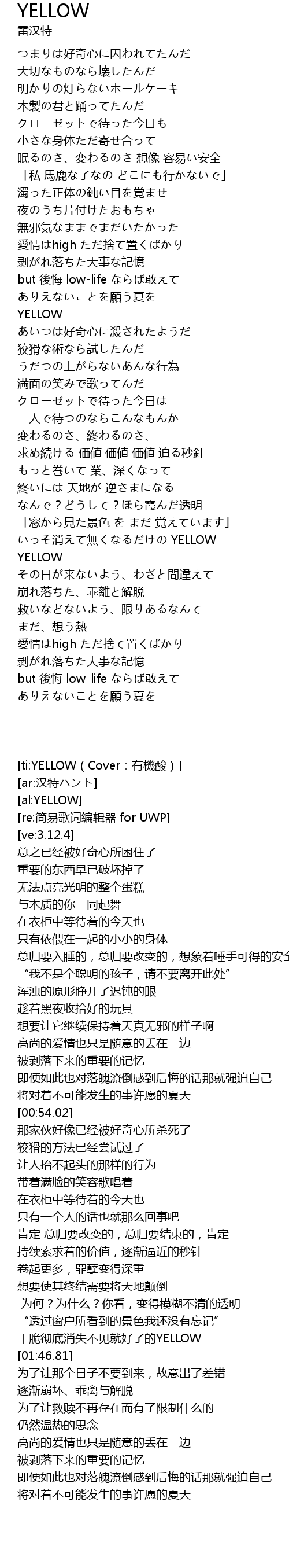 | [01:38.87] | xiao wu YELLOW |