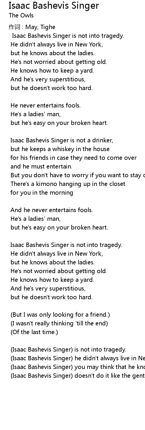 | Song | Isaac Bashevis Singer |