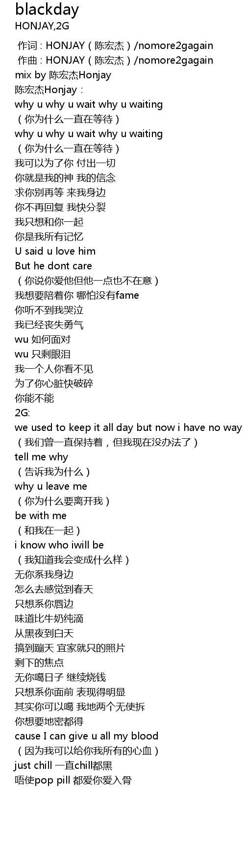 | [00:00.000] | zuo ci : HONJAY chen hong jie nomore2gagain |