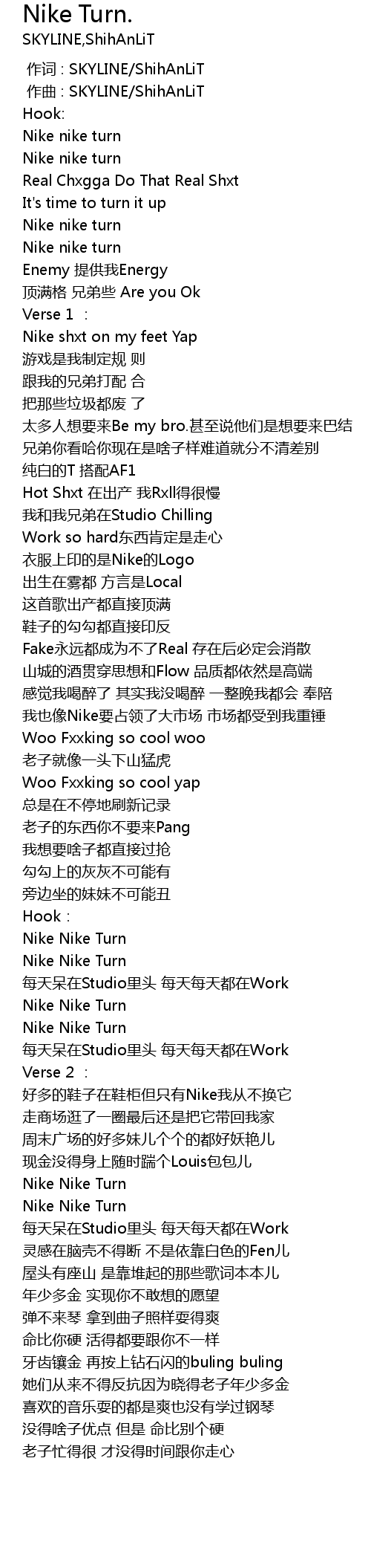 | [01:36.616] | hao duo de xie zi zai xie gui dan zhi you Nike wo cong bu huan ta |