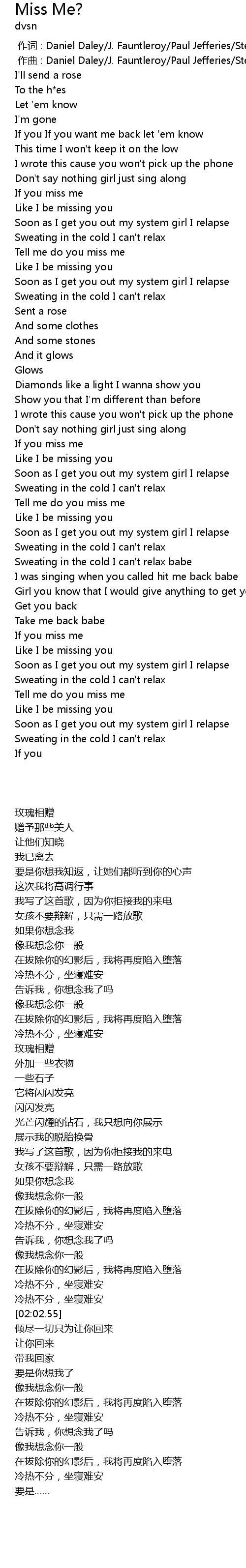 | [02:37.61] | Soon as I get you out my system girl I relapse |