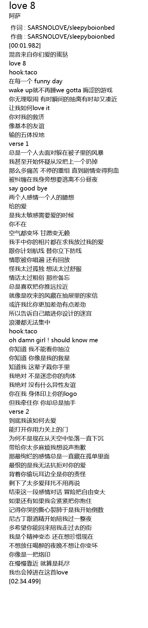 | [00:00.991] | zuò qǔ : SARSNOLOVE sleepyboionbed |
