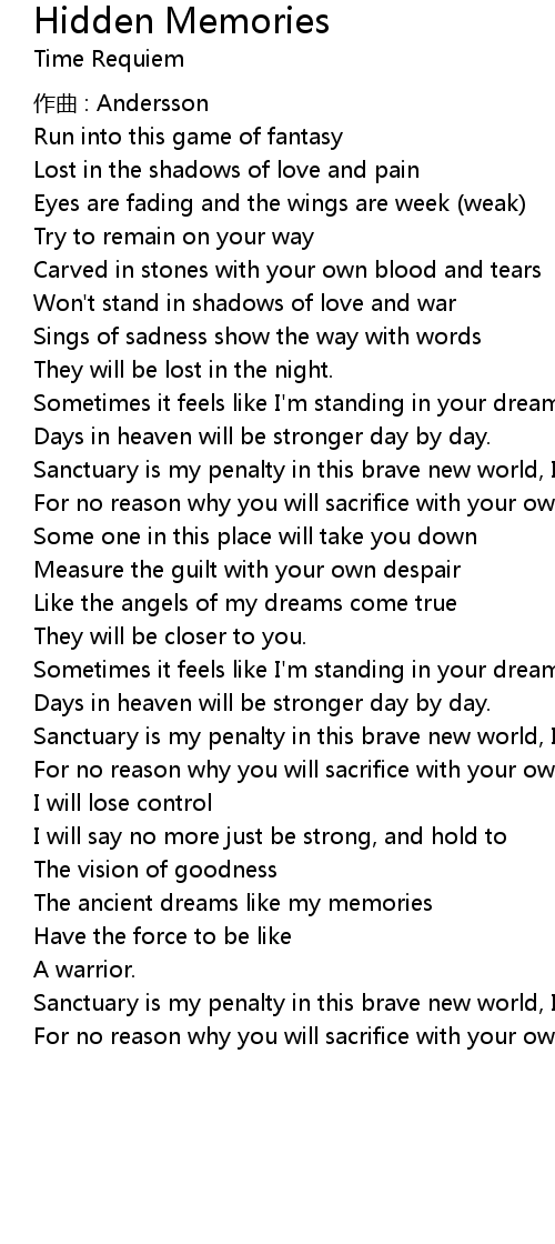 | Sanctuary is my penalty in this brave new world, I will testify | |
