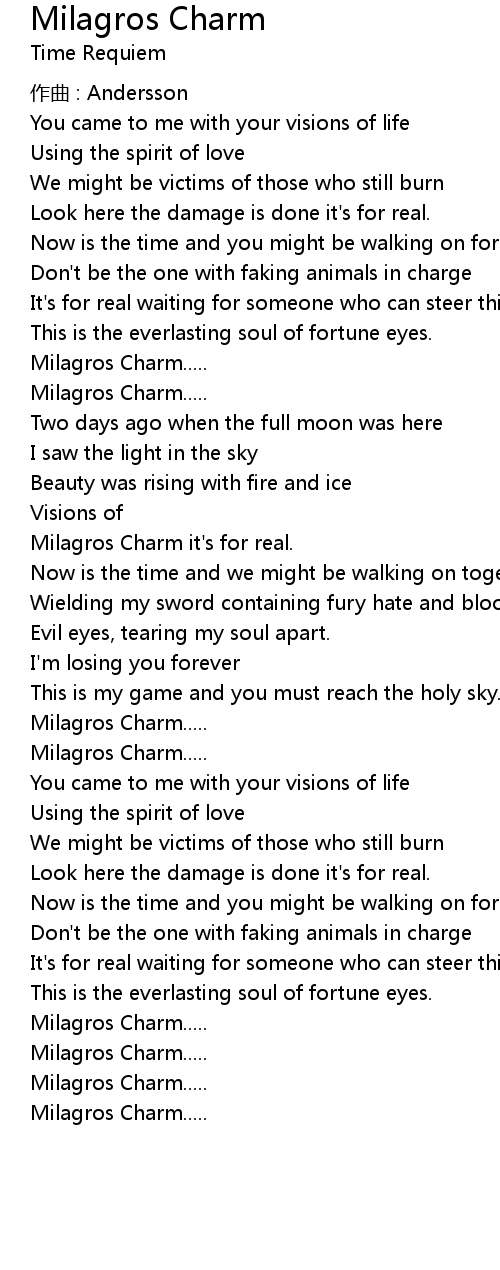 | Song | Milagros Charm |