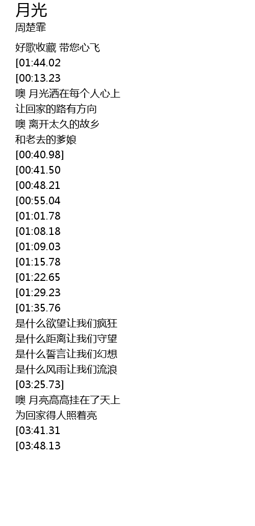 | [02:03.93][00:41.50] | 噢 迎着月色散落的光芒 |