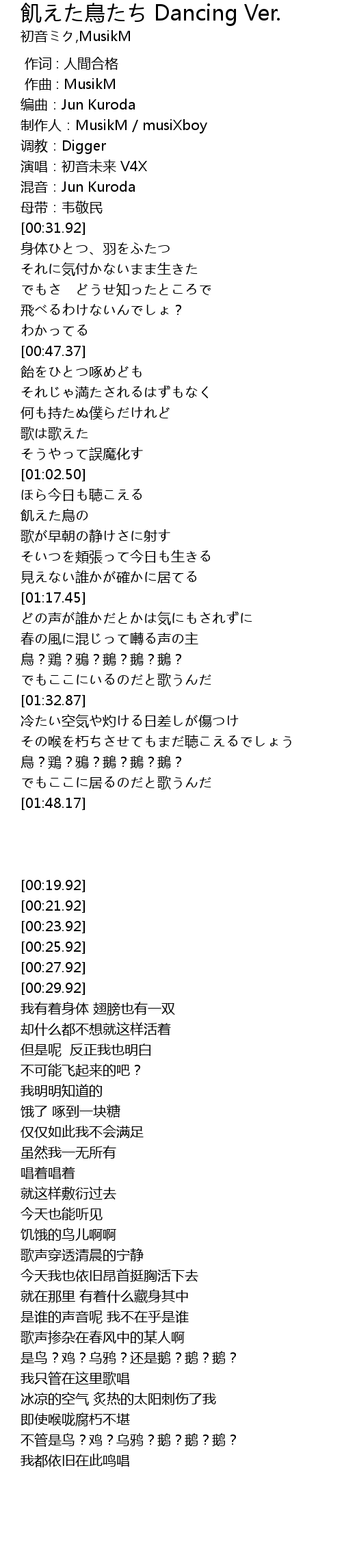| [01:40.77] | 鳥?鶏?鴉?鵝?鵝?鵝? |
