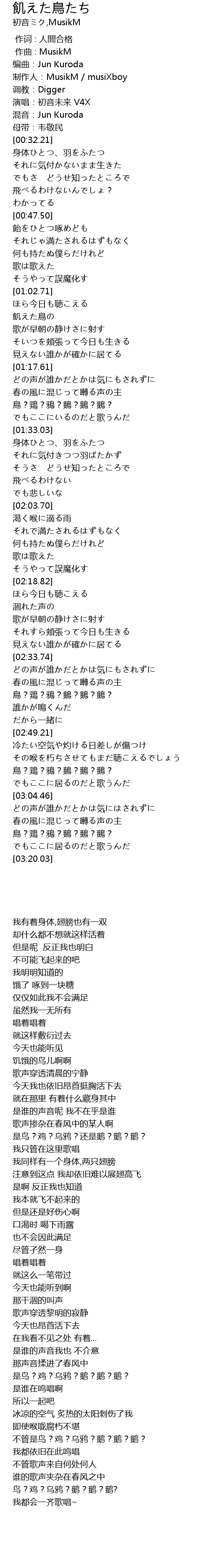 | [02:57.02] | 鳥?鶏?鴉?鵝?鵝?鵝? |