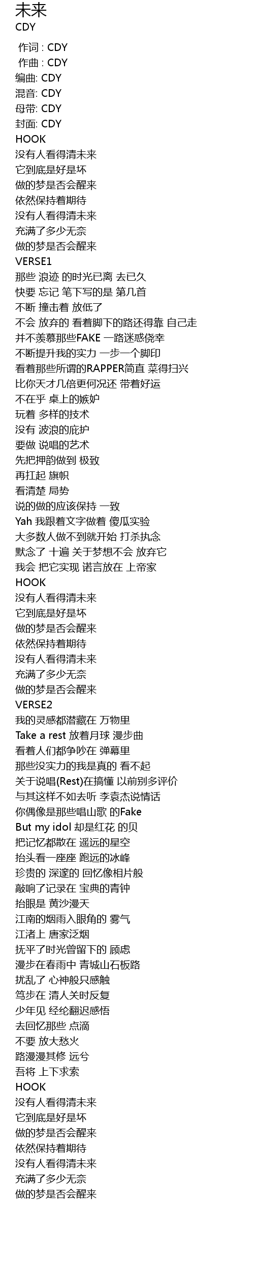 | [00:00.000] | 作词 : CDY |