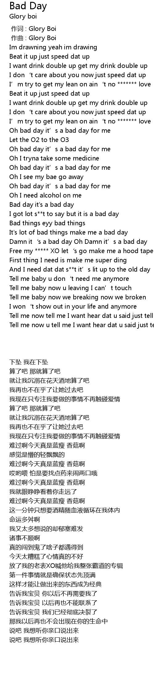 | [01:20.304] | It's lot of bad things make me a bad day |