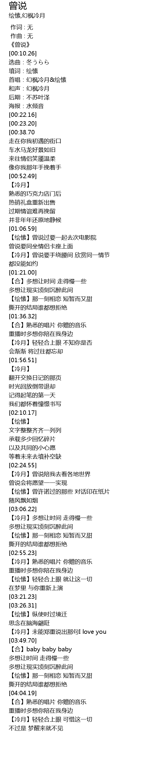 | [02:32.35] | 【绘愫】曾许诺过的那些 对话印在纸片 |