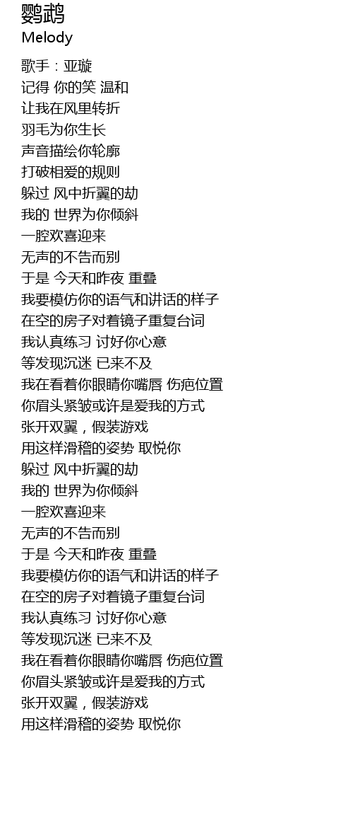 | Song | 鹦鹉 |