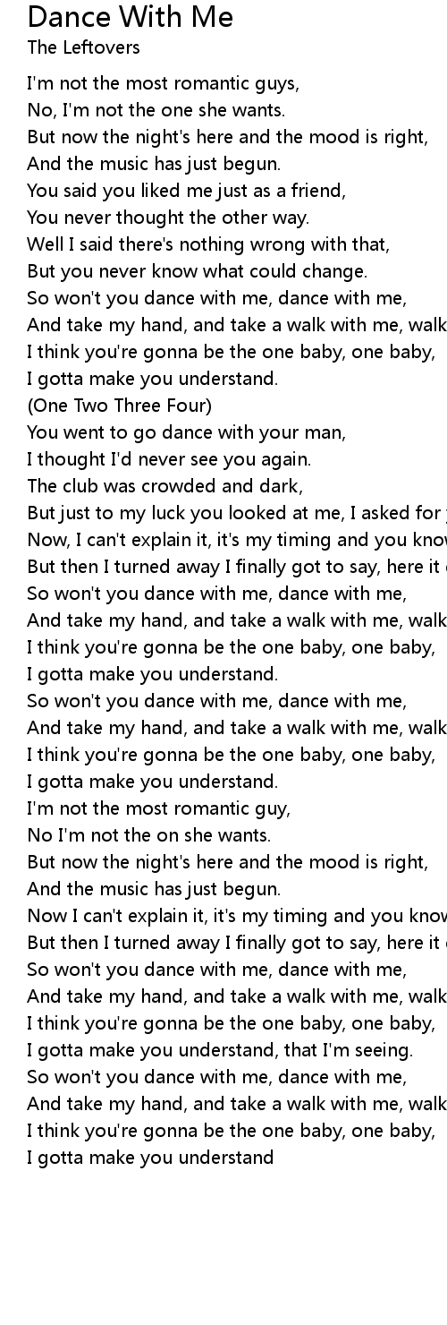So won't you dance with me, dance with me, |