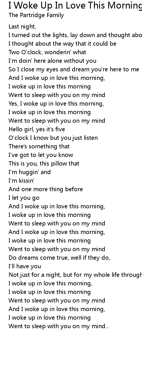 Yes, I woke up in love this morning, |