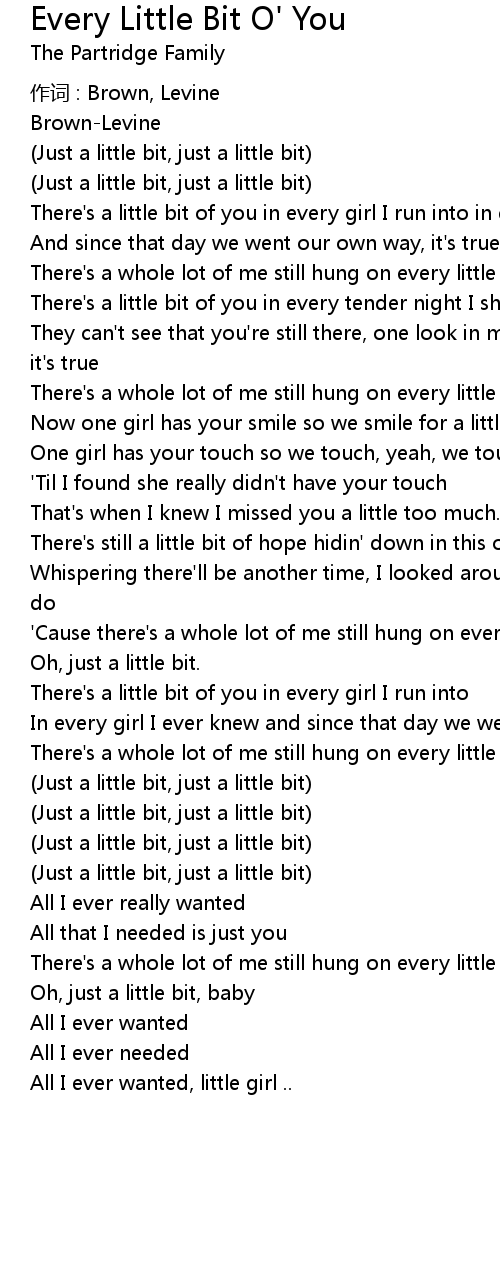 | There' s a little bit of you in every girl I run into in every girl I ever knew | |