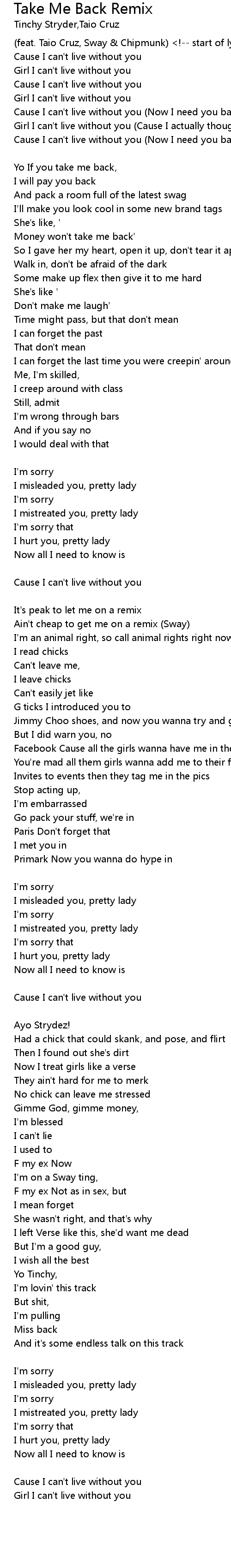 | Girl I can't live without you [Sway:] | |