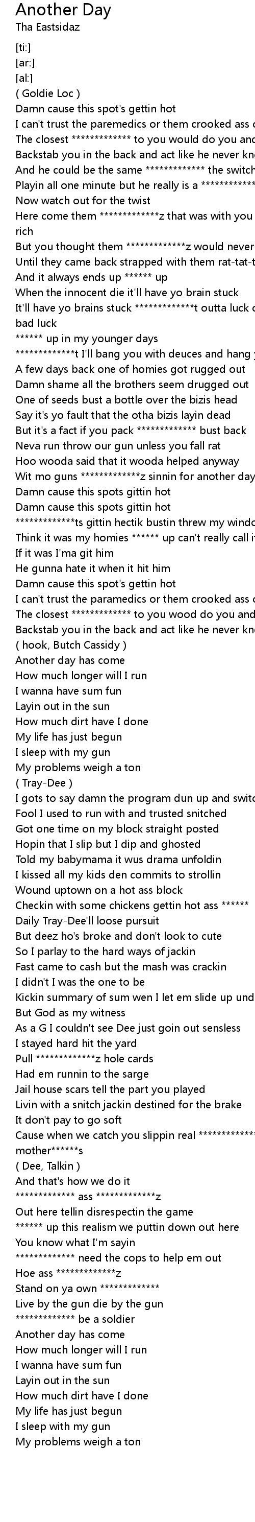 [01:16.34] Wit mo guns *************z sinnin for another day