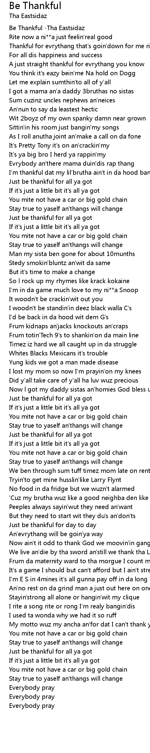 Be Thankful -Tha Eastsidaz |