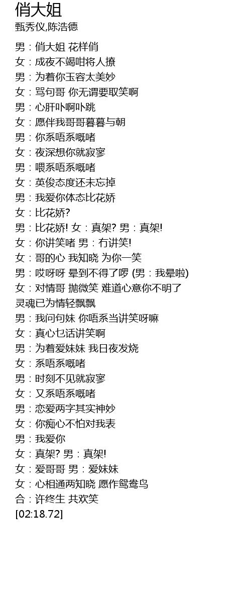 | [00:53.85] | 女:你讲笑啫 男:冇讲笑! |