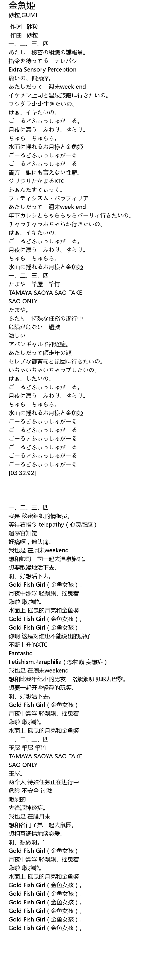 | [03:11.08] | ごーるどふぃっしゅがーる |