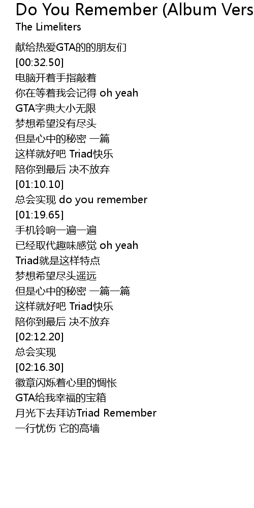 | [02:50.15] | yue guang xia qu bai fang Triad Remember |