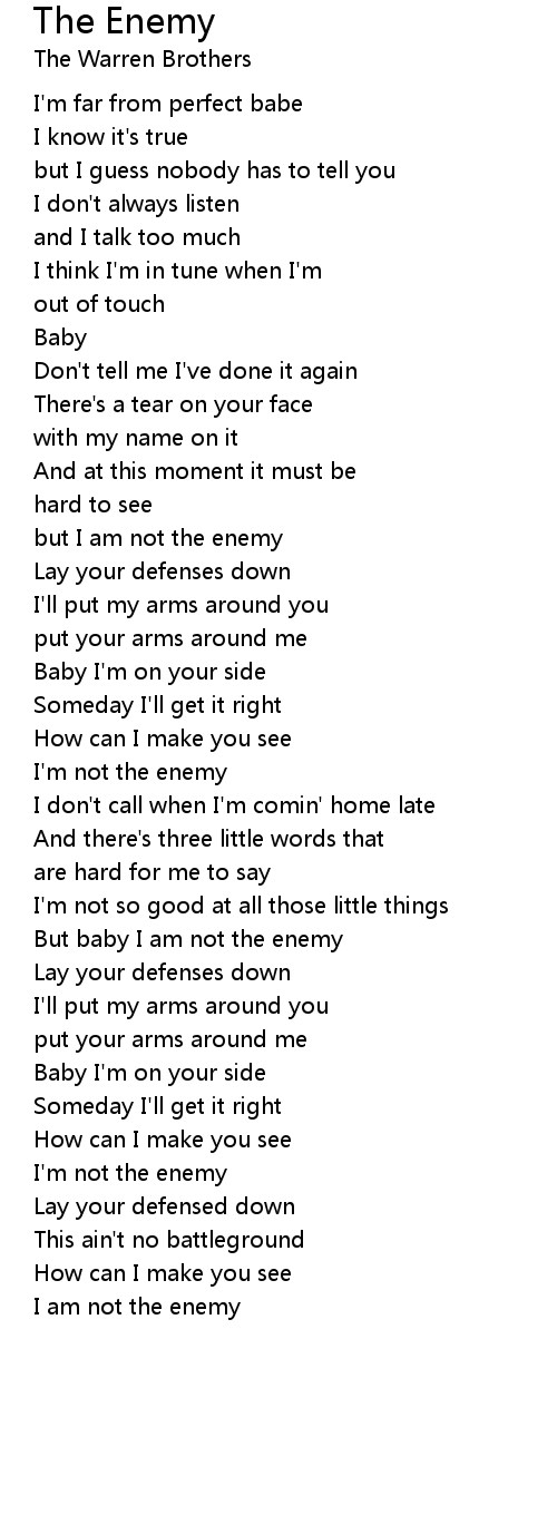 But baby I am not the enemy |