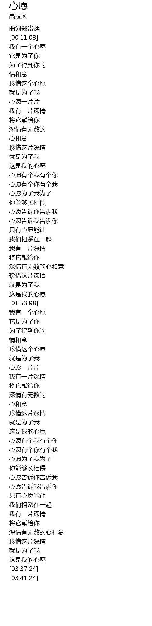| [00:13.79] | 我有一个心愿 |