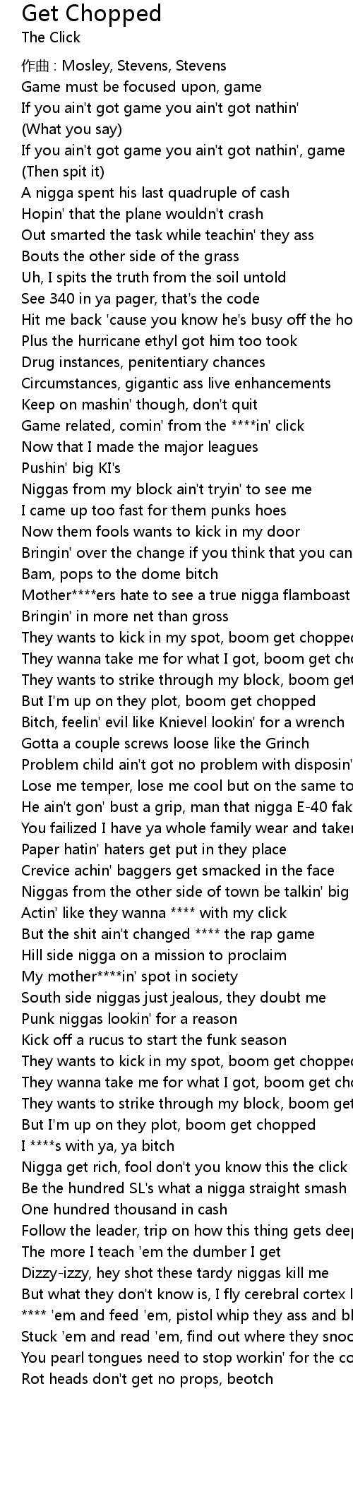 | But I'm up on they plot, boom get chopped | |