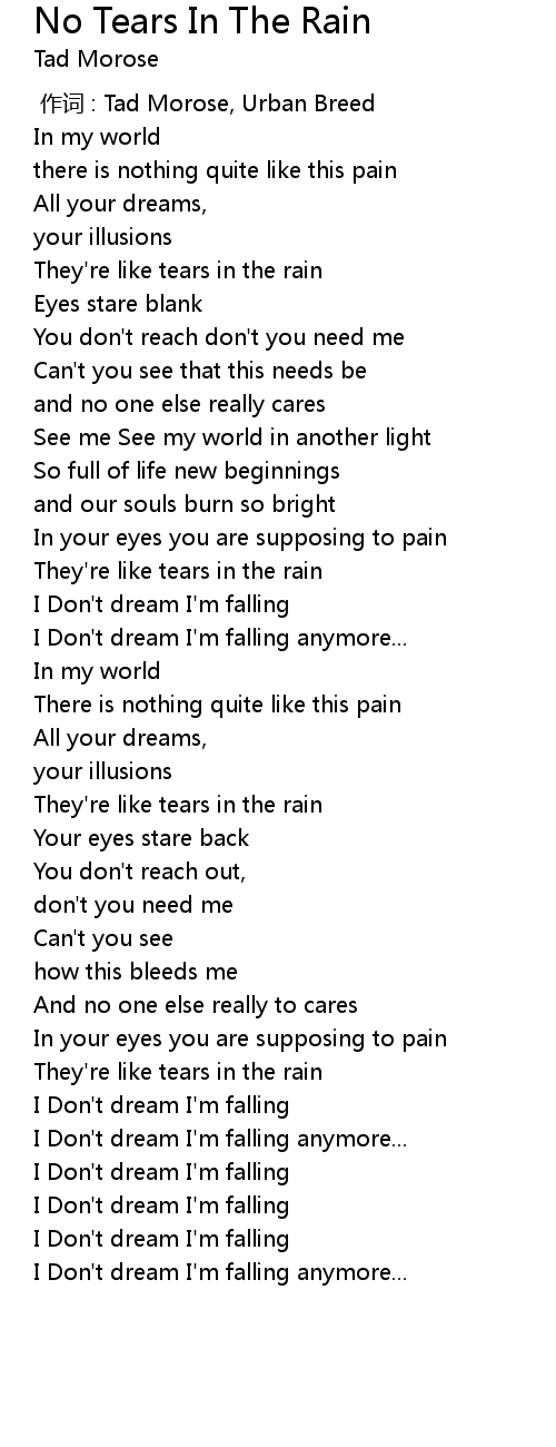 | [01:36.72] | I Don' t dream I' m falling anymore... |
