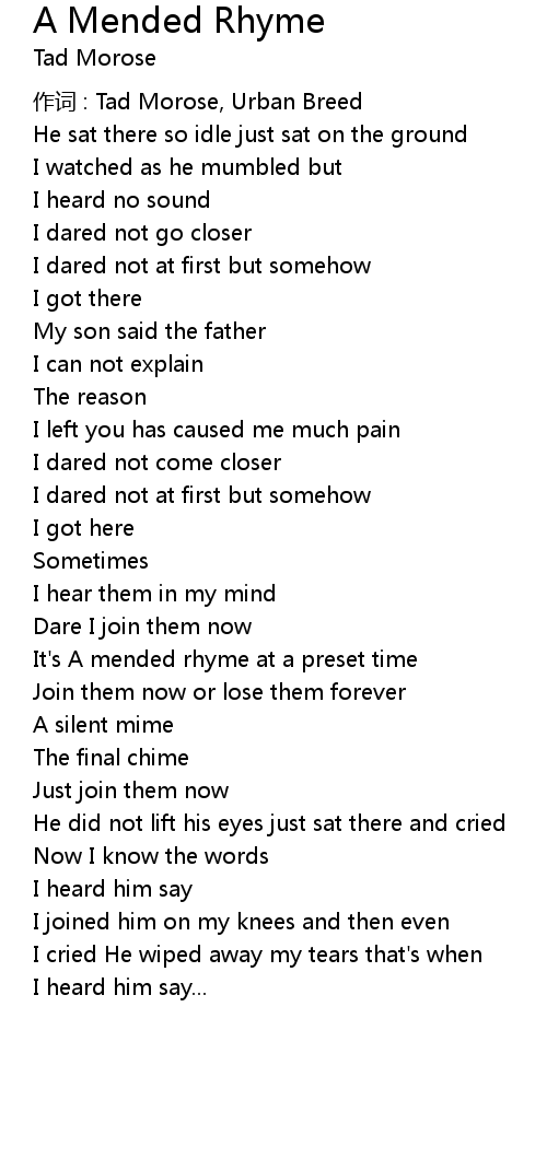 | Song | A Mended Rhyme |
