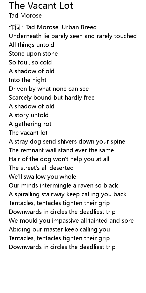 | Song | The Vacant Lot |