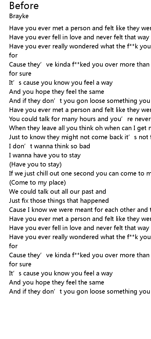 | [01:44.84] | Have you ever fell in love and never felt that way before |