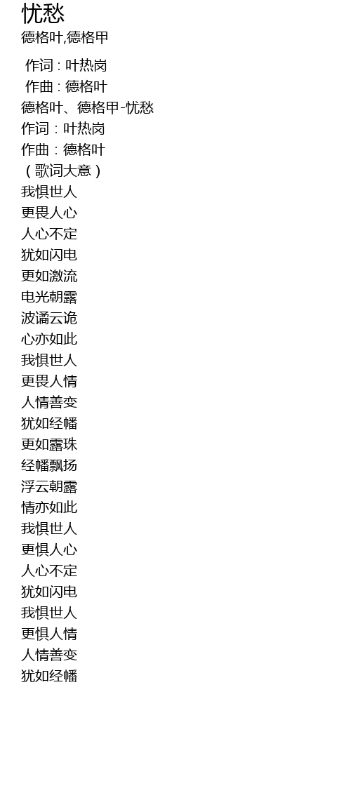 | [00:00.81] | 德格叶、德格甲-忧愁 |