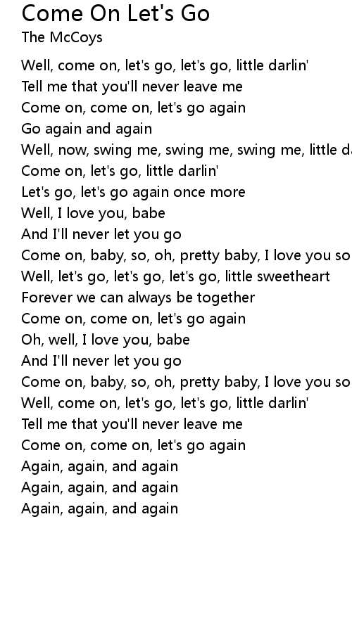 Well, come on, let's go, let's go, little darlin' |