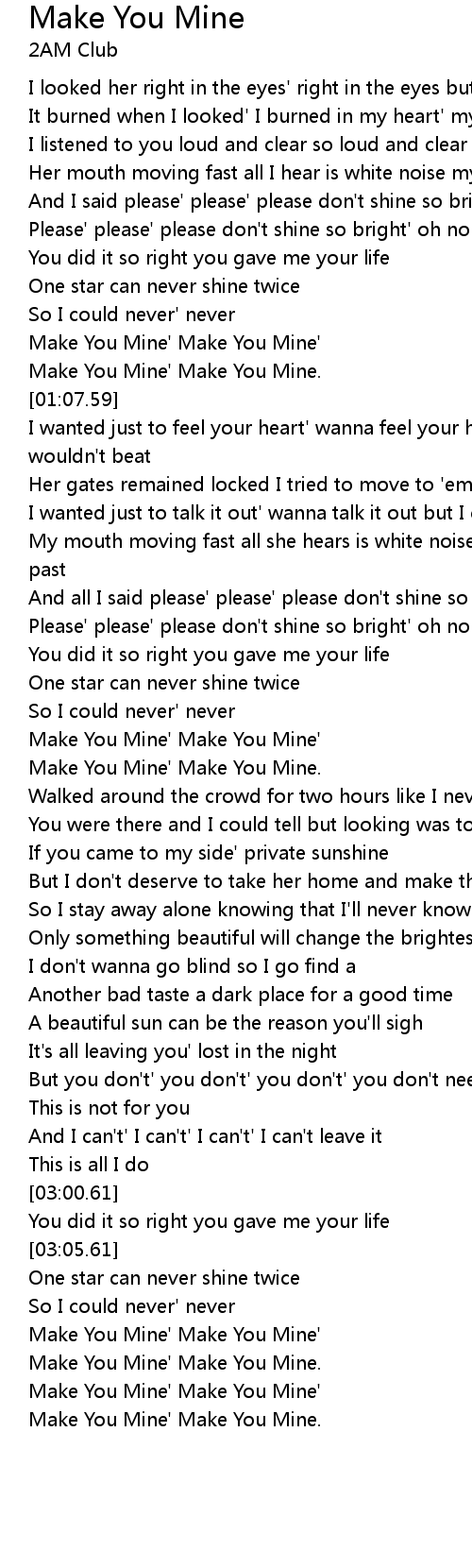 I wanted just to feel your heart' wanna feel your heart but it wouldn't beat |