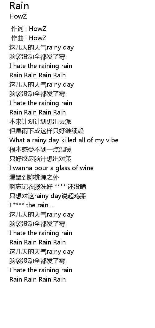 | [01:34.64] | Rain Rain Rain Rain |