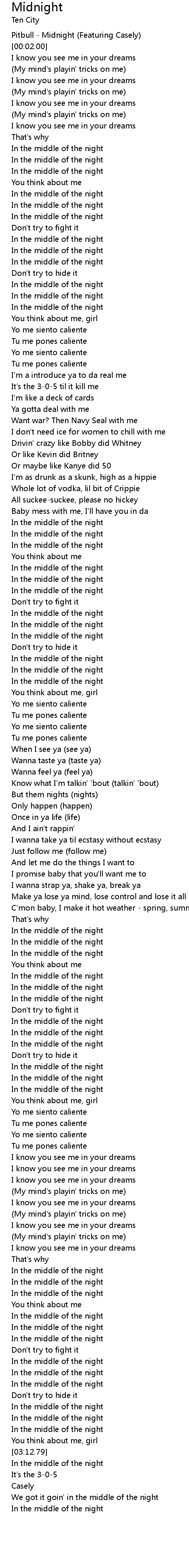 [00:01.00] Pitbull - Midnight (Featuring Casely)